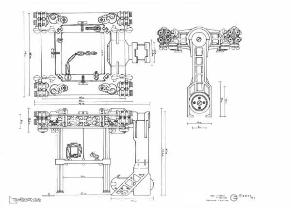 History:The lifter is designed for rescue missions as well as for cargo transportation. The ship is built of a rectangular steel frame structure connected to a rotating arm. The steel frame bears 4 identical engines located in each corner which provide propulsion along the ships horizontal level and thrusters for landing manouvers. Adjacent to the engine we find fuel tanks, reactors and force-field generators. The arm bears a self supporting habitat , an elevator to the steel frame and the rotation axis. The arm has to be rotated upside when the lifter is landed or if large cargo containers would block the pilot's view. The habitat is always rotated according to the arms movement, so that the floor is parallel to the ships axis or, if desired, perpendicular to the gravitational vector of a planet or ship. For means of moving the cargo an extendable frame with manipulator arms and search lights is used, that can be lowered from the still hovering ship down to a surface. Large cargo could be locked within the lowered frame and the ships main frame in some kind of a cage. The life habitat can also serve as life vessel, for it has limited manouvering capabilities. |