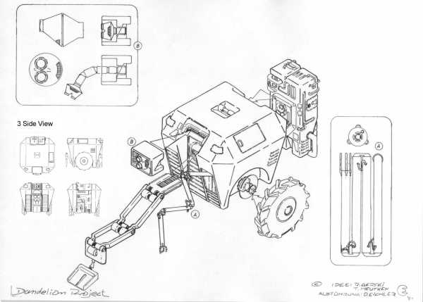 - manipulating arms : 4 joints, 3 fingers, "hand" with light source and fibre optics