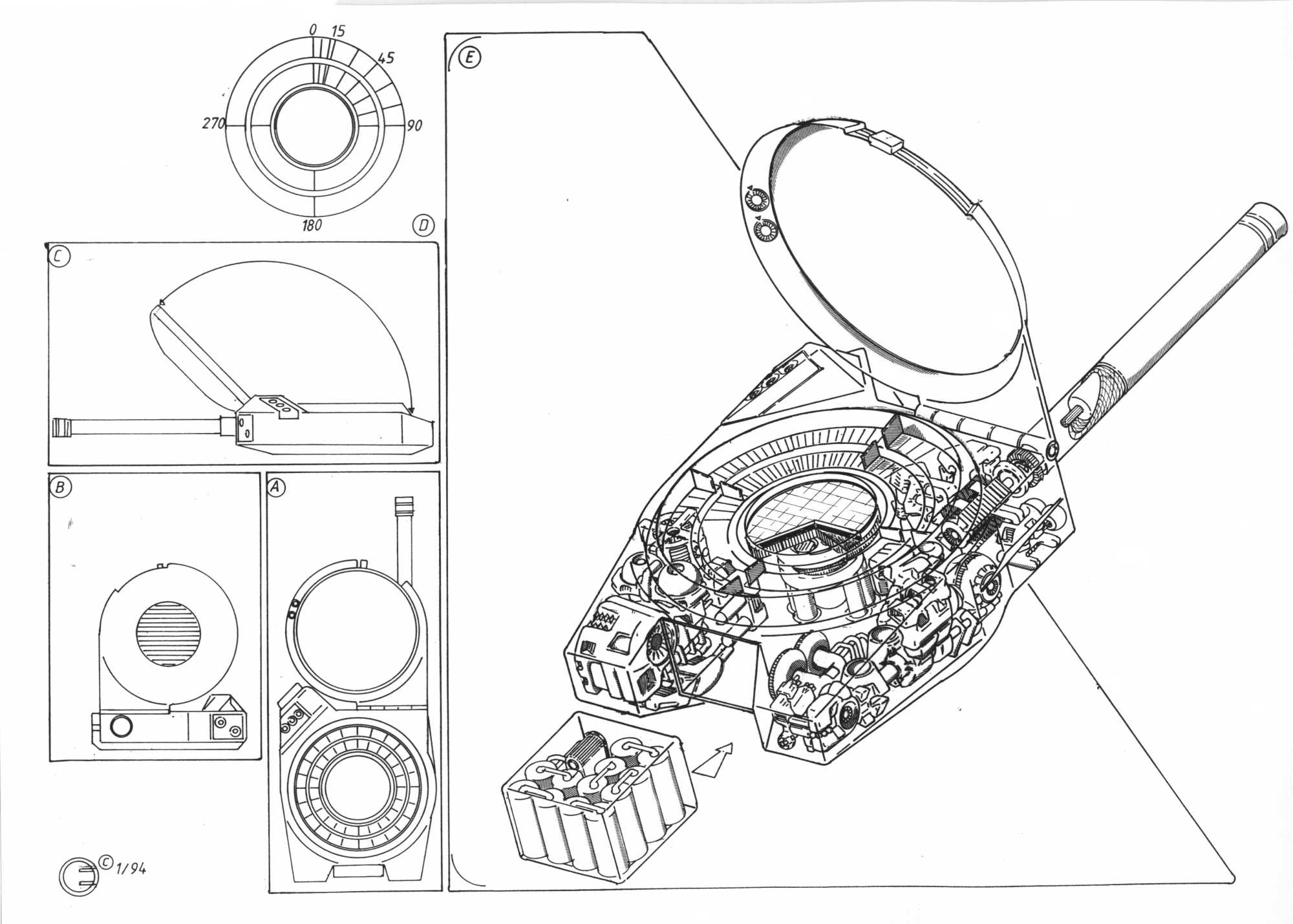 Allgemeines:Im Zuge der Erkundungsflüge auf dem Rückweg von der Großen Leere stieß die Besatzung der BAS-KR 0815 auf einem kleinen Planeten auf die Überreste einer untergegangenen Zivilisation. Kartographierungen des Planeten ergaben, daß er offensichtlich mittels eines Koordinatensystems in 18.662.400 Sektoren eingeteilt worden war, in deren geometrischen Zentren jeweils ein Techno-Turm stand. Ungefähr gleichzeitig dazu fand man in einem Ausrüstungsdepot hunderte Artefakte der dargestellten Art. Wie weitergehende Untersuchungen ergaben, handelte es sich bei den Türmen um eine Art Fiktivtransmitter, mittels derer Personen innerhalb des zugehörigen Sektors erfaßt und an eine vorher gewählte Adresse abgestrahlt werden konnten. Die gefundenen Artefakte stellten vermutlich Steuergeräte für diese Transmitter dar. Das Steuergerät besaß einen aufklappbaren Bildschirm, der vermutlich zur Zielfindug verwendet wurde. Die Einstellung erfolgte mittels zweier skalierter Ringe, die eine Einteilung von 360 Teilstrichen aufwiesen. Um die nötige Genauigkeit für einen Personentransport zu ermöglichen, wurden die Koordinaten mittels der Ringe in 6 oder 8 Stellen eingegeben. Man wählte vermutlich zunächst mit den ersten 4 Stellen den Transmitter-Relais-Turm an, um diesem dann mit den letzten 2 oder 4 Ziffern den genauen Standort anzugeben. Die Übertragung der Daten zu den relaistürmen erfolgte mittels elektromagnetischer Wellen in 25 kHz breiten Frequenzbändern zwischen 100 und 150 MHz. Das beschränkte die Anzahl der gleichzeitig pro Sektor zur Verfügung stehenden Transporte auf 2000, woraus sich eine maximal Bevölkerung von etwa 37 Milliarden errechnen läßt. Drawing & text : Olaf Eichler, © 1994 and yes, there IS a resemblance to my OMNI cutaway. You got me ! |