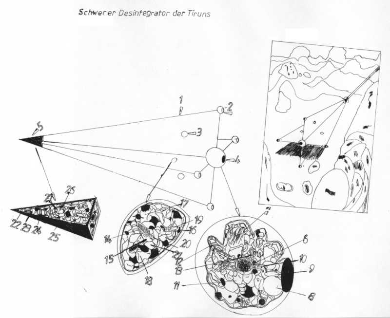 The drawing shows one of this weapons in desintegrating mode. Up to 6 different weapons can be materialized and remote controlled